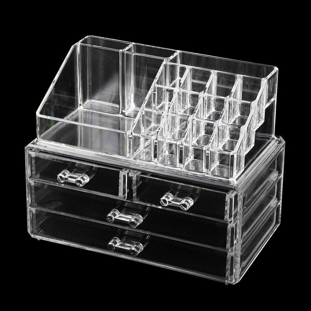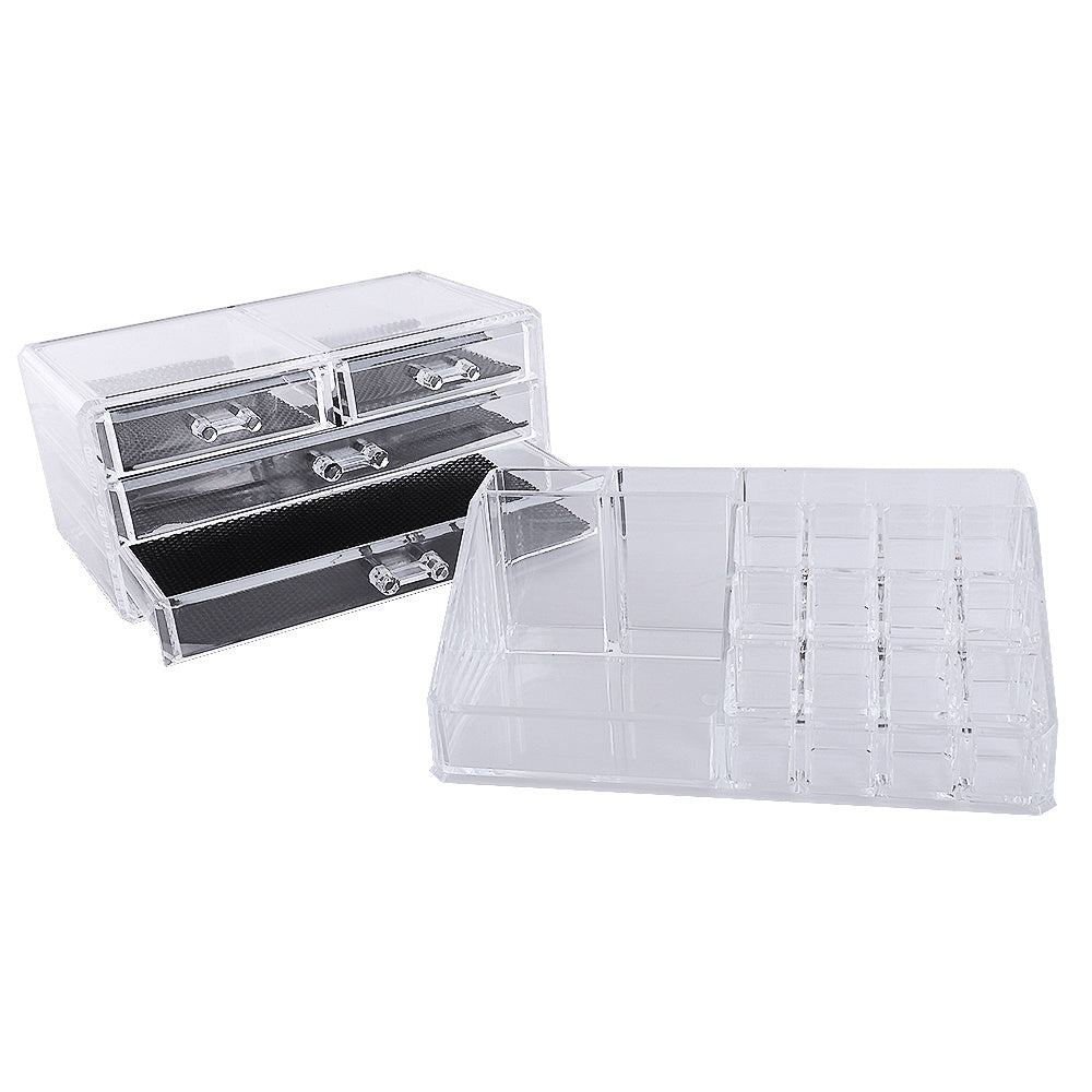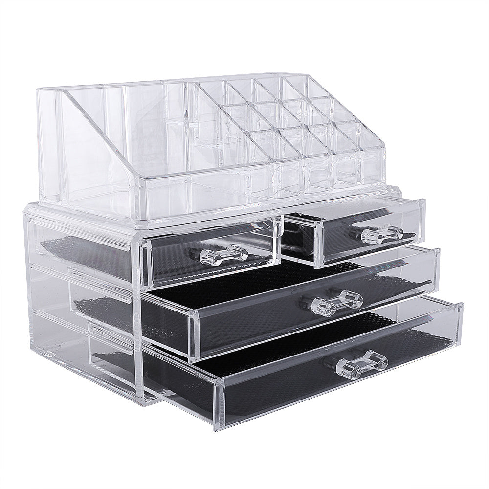 Our new recommendation of this Multi-check & 4 Drawers Integrated Acrylic Makeup Case Cosmetics Organizer must be your optimal choice among various displays. It is in particular design made with meticulous craftsmanship, ensuring high strength, solid structure and glossy touch. With the upper part, it is especially divided into compartments for accommodating many items. And the lower one, with 4-drawer style, it allows you classify your gadgets for convenient use. With it, you will well organize your messy cosmetic tools! Is it a stylish item?
